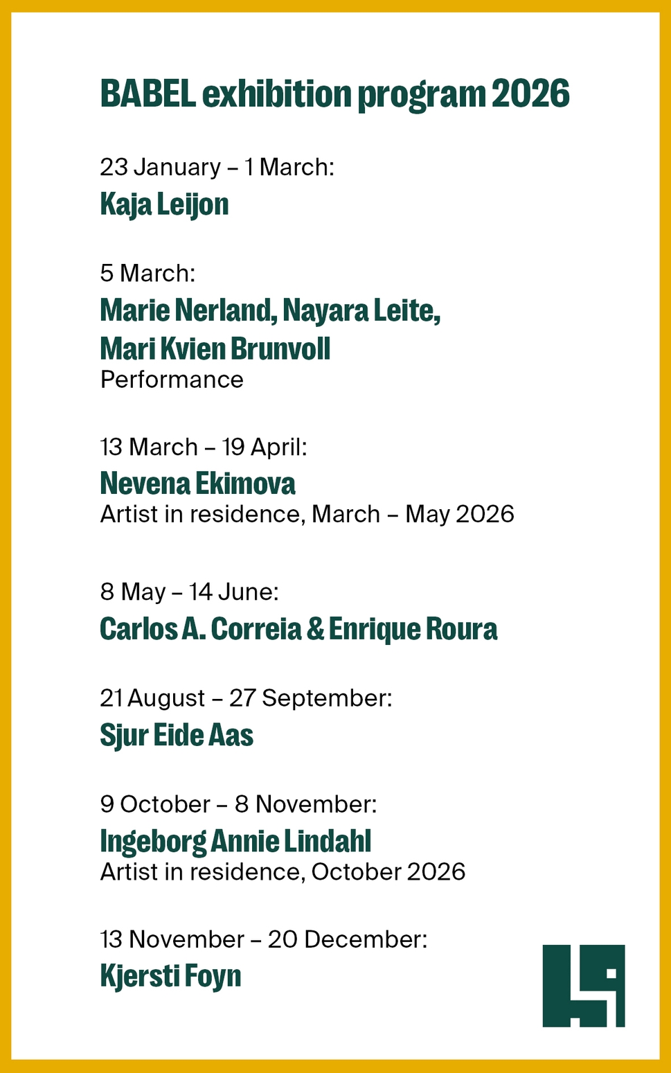 Would you like to stay updated on what’s happening at Lademoen Kunstnerverksteder? Subscribe to our newsletter and receive the latest news about exhibitions, artist talks, open calls, studio opportunities, and much more—directly in your inbox. The newsletter is sent out approximately once a month.