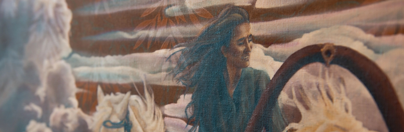 I am a multimedia artist working with painting and installation. My work is project-based and revolves around sublimation. The intention of my practice is to create spaces for reflection that address human themes, offering the viewer an opportunity to channel inner thoughts and experiences. Grief, belonging, and existential reflection are recurring themes, visualized through spatial landscapes, portraits, and interactive installations that engage the various senses.