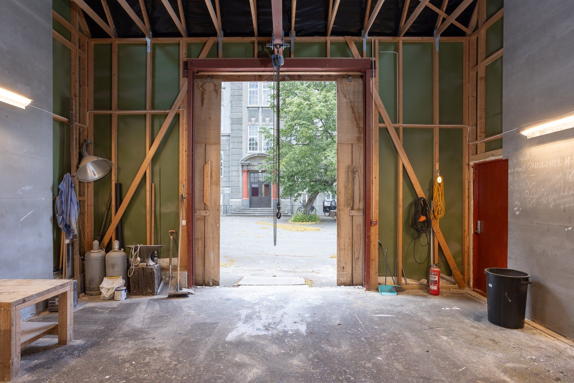 A flexible outdoor workspace for large-scale or messy projects. LKV’s ceramic kiln is also located here, supporting ceramic and sculptural work.