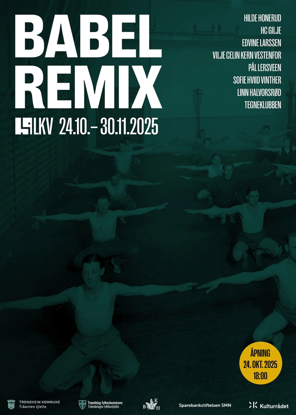 «BABEL REMIX» er den aller første utstillingen i det nye visningsrommet, og viser arbeider av Hilde Honerud, HC Gilje, Edvine Larssen, Vilje Celin Kern Vestenfor, Pål Lersveen, Sofie Hviid Vinther, Linn Halvorsrød og Tegneklubben (Bjørn Bjarre, Ulf Verner Carlsson, Paul Dring, Terje Nicolaisen og Martin Skauen).